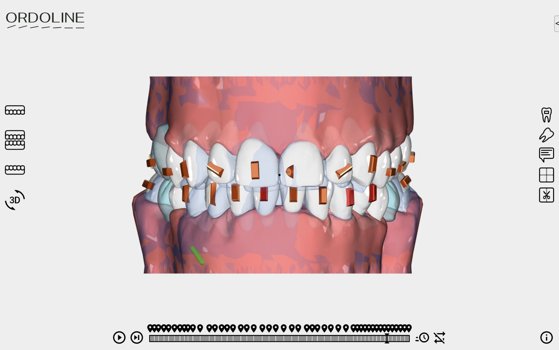 Upper jaw expansion, and Class II correction with II class elastics on the left side. Close space on the upper arch, IPR 0.4 in the lower arches 31-32, 41-42